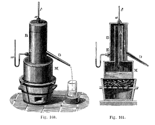 I due strumenti servono per tarare i termometri allo 0 °C e a 100 °C. Il vaso a destra serviva per la determinazione del punto di fusione dell’acqua distillata; la stufa di Regnault a sinistra, serviva per la determinazione del punto di ebollizione.