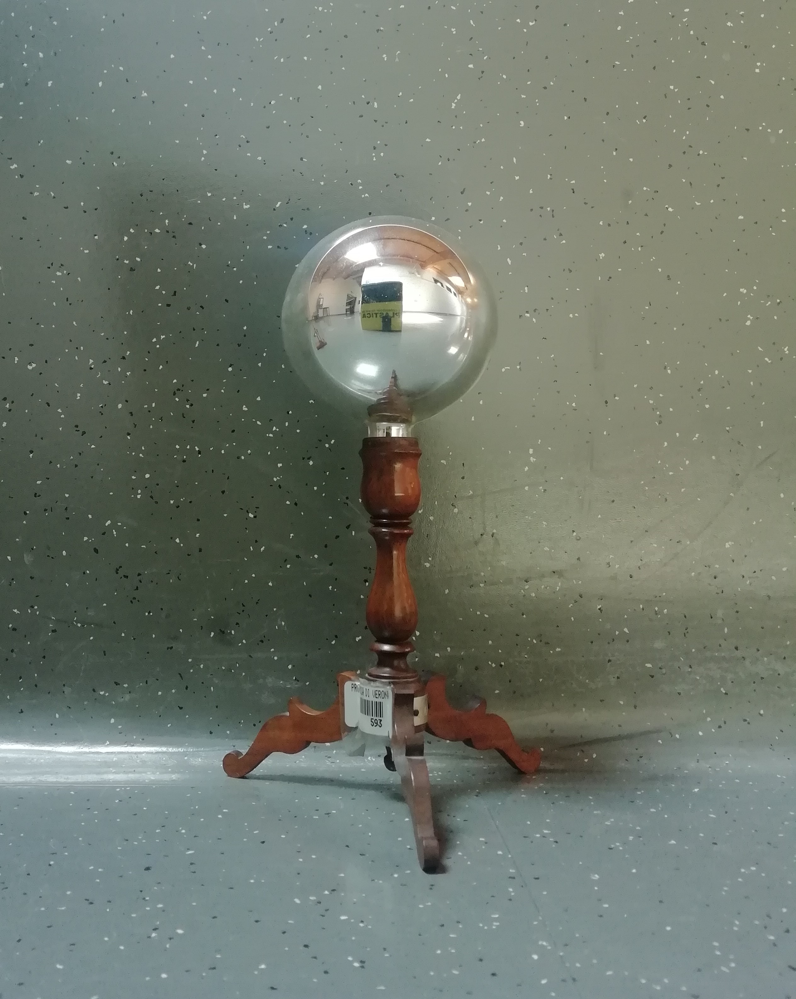 Lo strumento consiste in una sfera riflettente sostenuta da un supporto, usata per studiare le leggi della riflessione e quindi dell’ottica geometrica. A differenza della riflessione diffusa, dove la luce viene riflessa in una gamma di direzioni, la sfera riflette specularmente, quindi tutta la luce che arriva da una data direzione è deviata con uno stesso angolo.